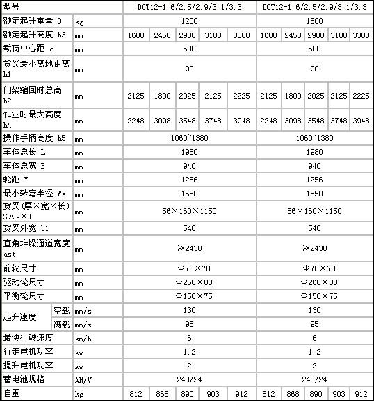 货叉最高高度:1600-3300mm