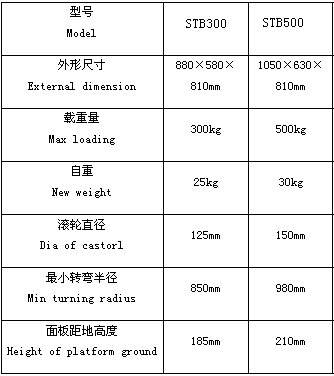 ※ 铁板板材型,固定扶手,面板采用2-3mm优质防滑花纹钢板或平面钢板,底部加强筋,脚轮可配尼龙轮、橡胶轮或PU轮, 常规为两定向两万向脚轮。 ※ 长宽和载重量也可按要求特制 。